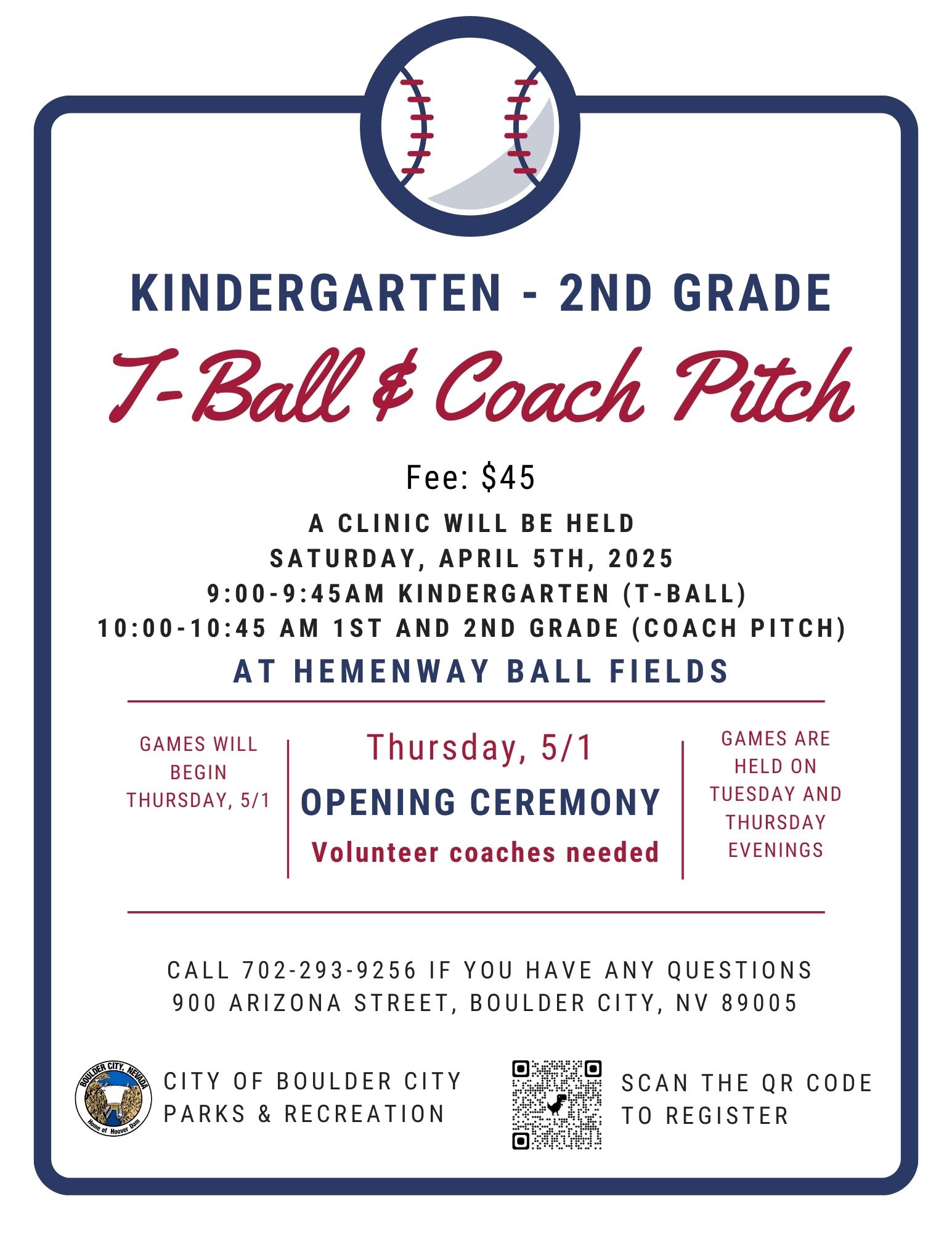 Register Now: https://bcrec.recdesk.com/Community/Home Programs - Youth Sports - Tball/Coach Pitch/Softball/Baseball